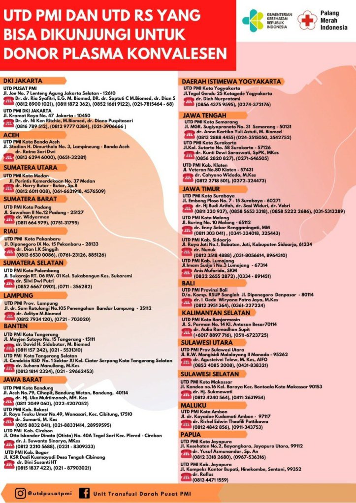Berikut lokasi Unit Transfusi Darah untuk melakukan donor plasma Convalescent