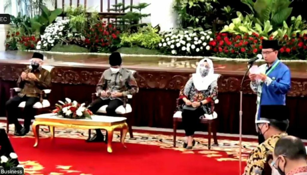 Presiden didampingi oleh Wakil Presiden Ma’ruf Amin dan Menteri Keuangan Sri Mulyani Indrawati. Acara ini juga dihadiri secara tatap muka maupun virtual oleh sejumlah pihak, antara lain Gubernur Bank Indonesia, Ketua Dewan Komisioner Otoritas Jasa Keuangan, dan Ketua Badan Wakaf Indonesia.