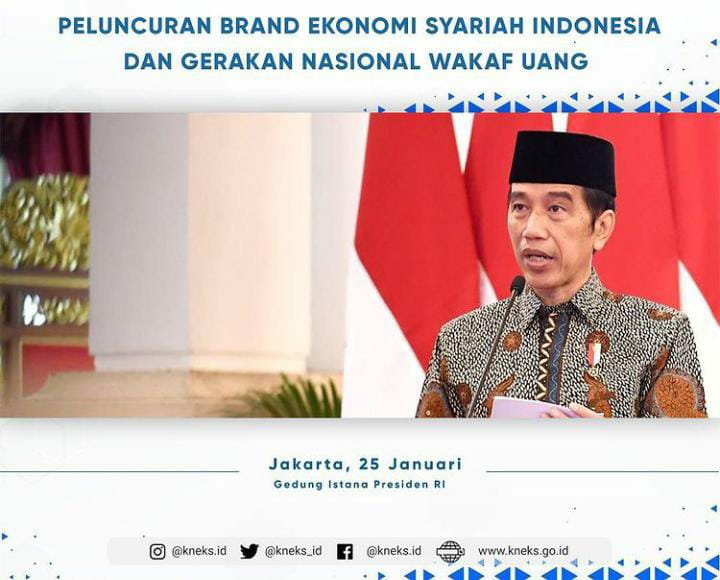Presiden RI Joko Widodo (Jokowi) secara resmi meluncurkan Gerakan Nasional Wakaf Uang, di Istana Negara, Jakarta, Senin (25/01/2021) pagi. Pada kesempatan itu Kepala Negara juga meresmikan Brand Ekonomi Syariah.