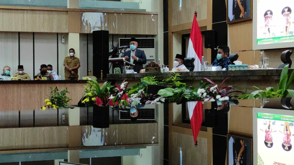 Saat peluncuran Pusat Antar Universitas bidang wakaf Prof Bunyamin Maftuh selaku Wakil Rektor Universitas Pendidikan Indonesia (UPI) memberikan sambutan.
